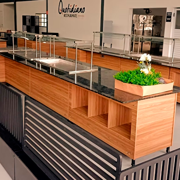 Soluções completas para cozinhas industriais e refeitórios que atendem grandes equipes com qualidade e agilidade.
